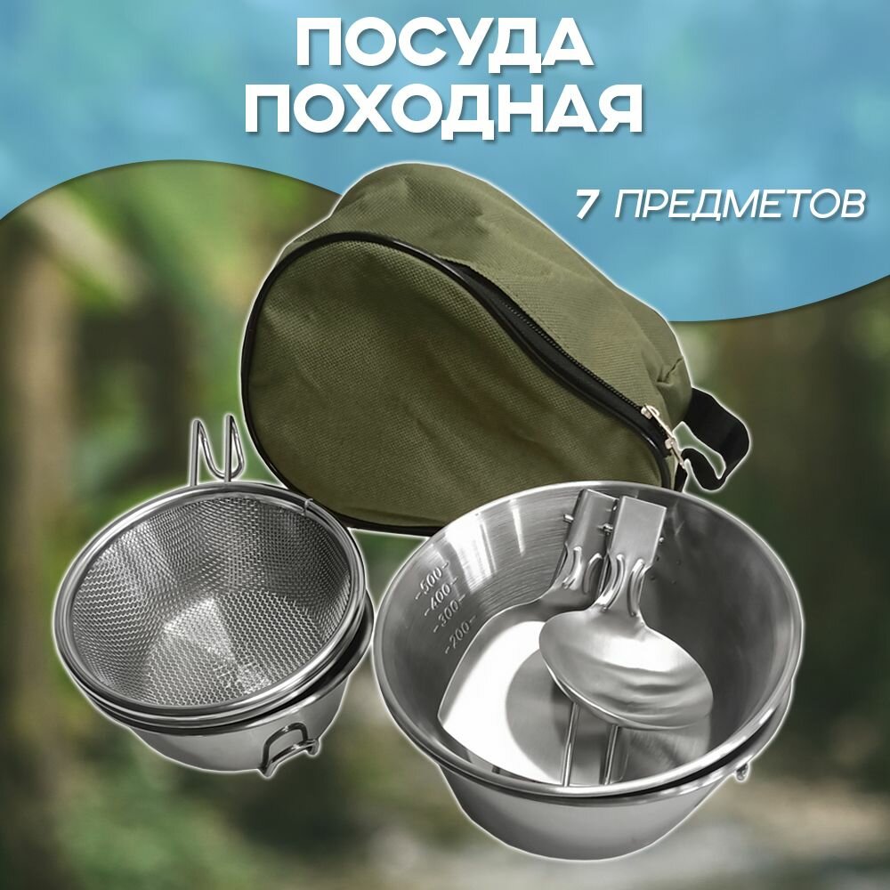 10 цен на Походный набор складной туристической посуды из нержавеющей стали, 7 предметов