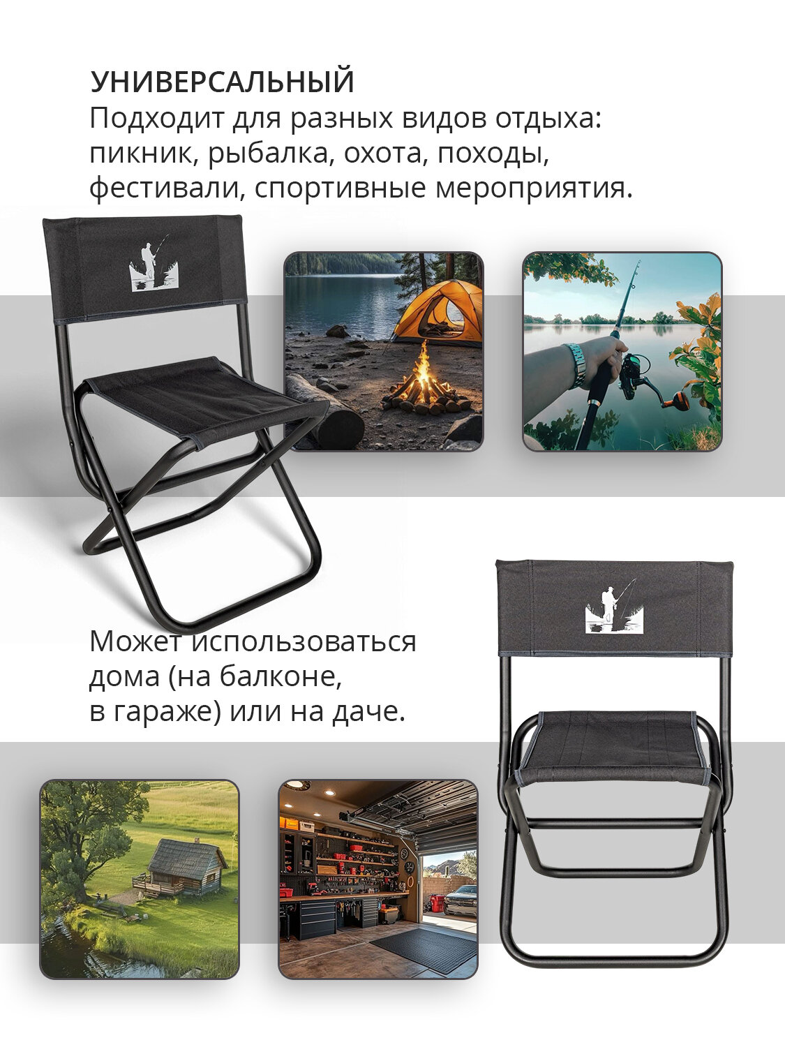Стул туристический складной со cпинкой FB-015, размер 66х34х45, чёрный информация: