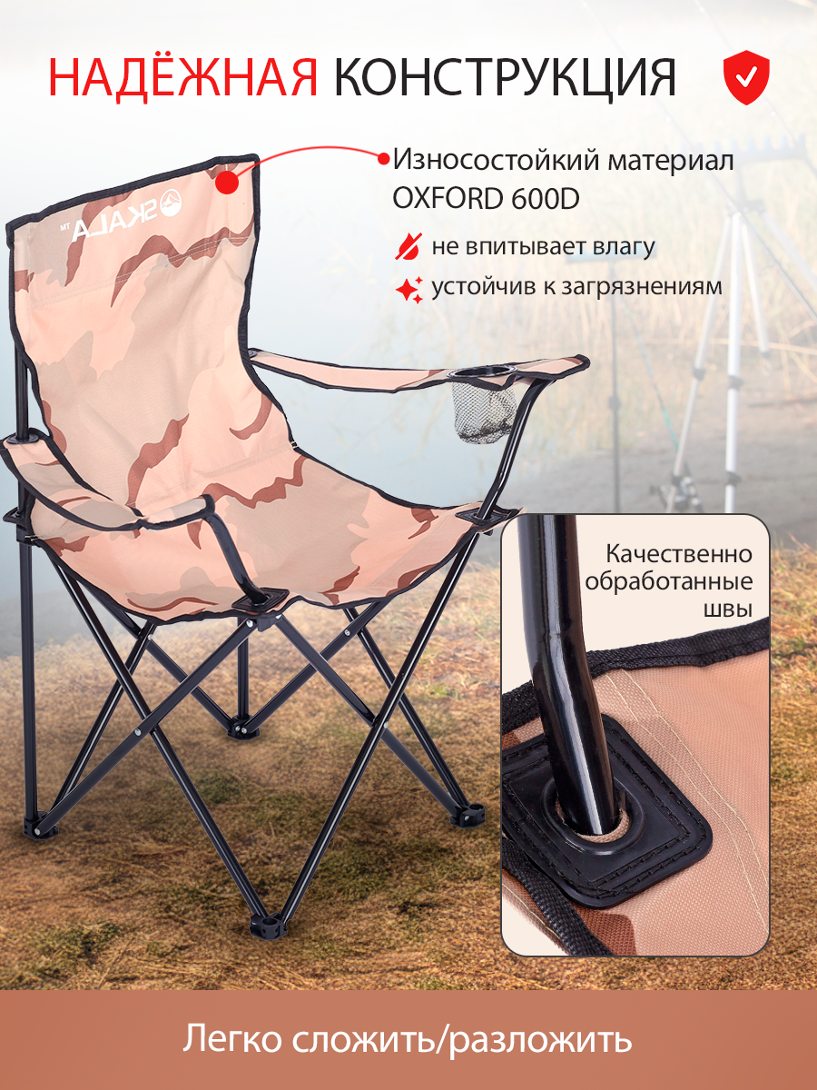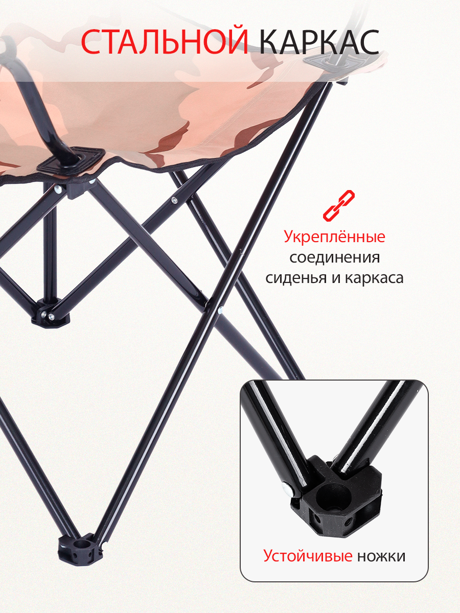 Отзывы на Стул туристический складной в чехле с подстаканником, до 110 кг, песочный камуфляж
