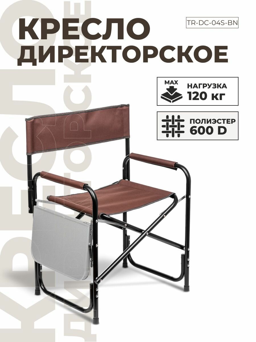 Кресло директорское туристическое складное с откидным столиком, коричневое для рыбалки и отдыха 120кг информация: