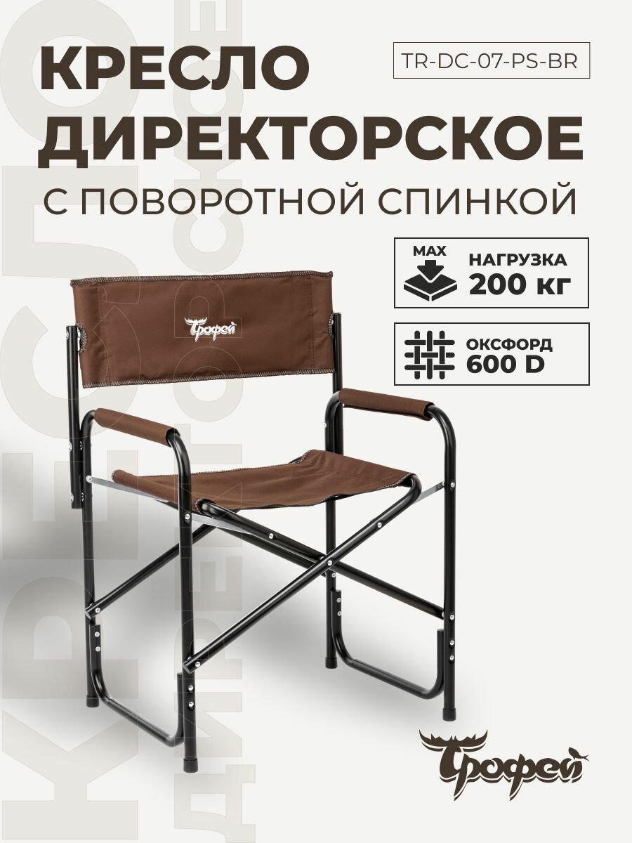 Кресло туристическое складное, 200кг, поворотная спинка, коричневый Трофей информация: