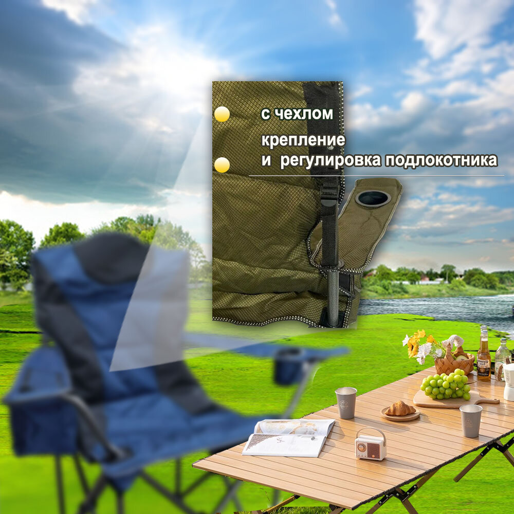 10 цен на Кресло складное, кемпинговое, подстаканником и с термо-сумкой 60*60*108см 2 штуки