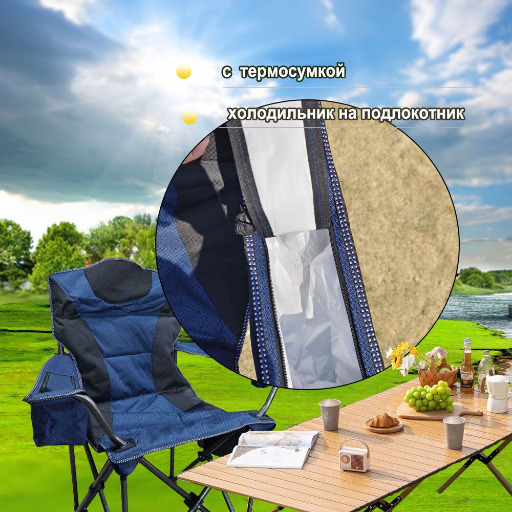 Отзывы на Кресло складное, кемпинговое, подстаканником и с термо-сумкой 60*60*108см 2 штуки