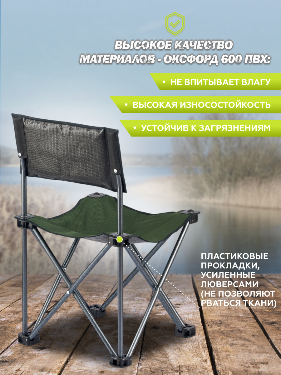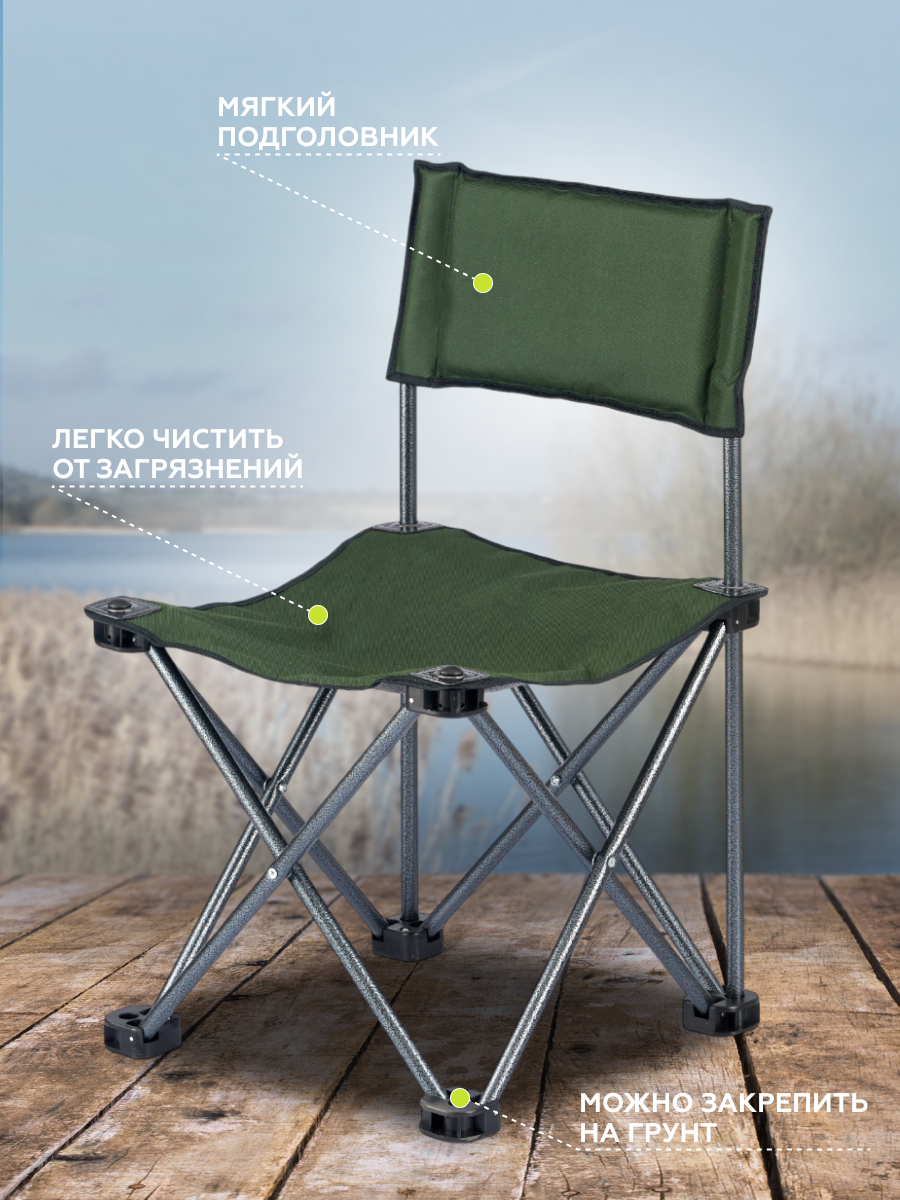 Отзывы на Стул Aquatic, складной, туристический, металлический каркас, нагрузка до 100кг, зеленый