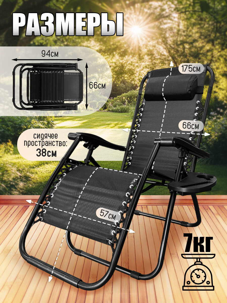 10 цен на Кресло шезлонг BIRDS AND FISH, складное, с подголовником, максимальная нагрузка 120кг