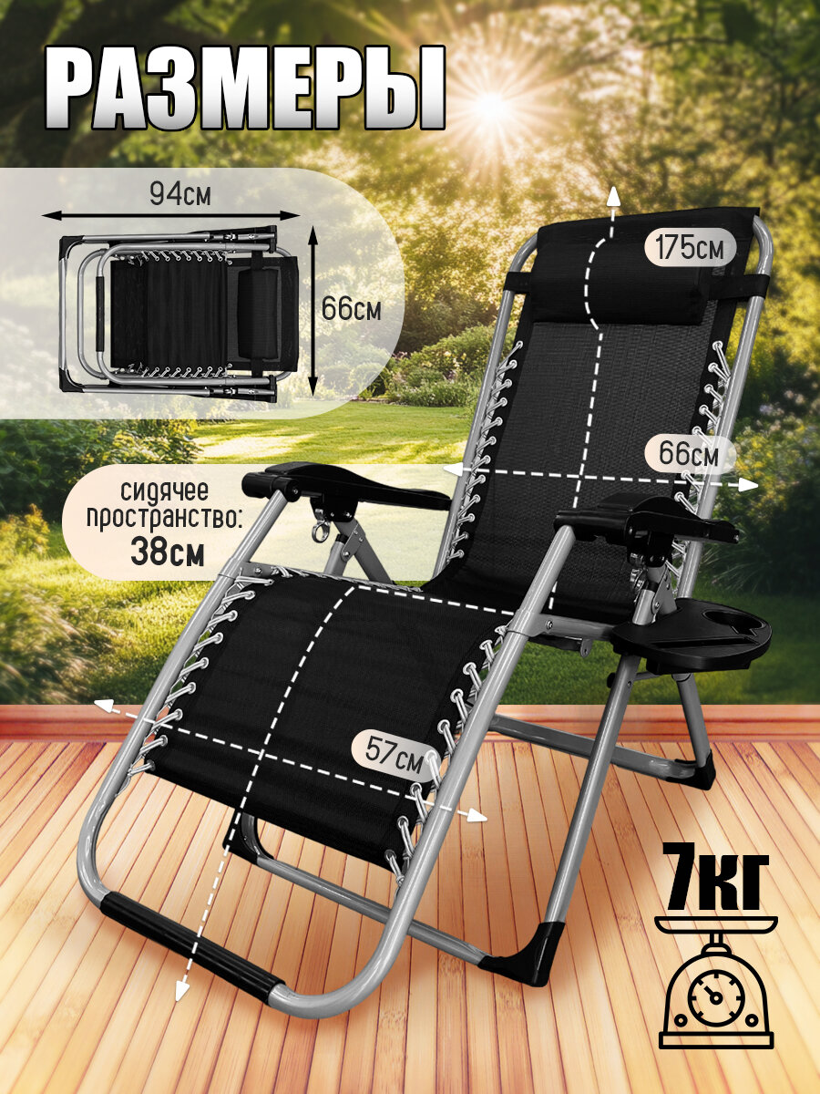 Отзывы на Кресло-шезлонг BIRDS AND FISH, 175x67x55 см, до 120кг, складное, с подстаканником