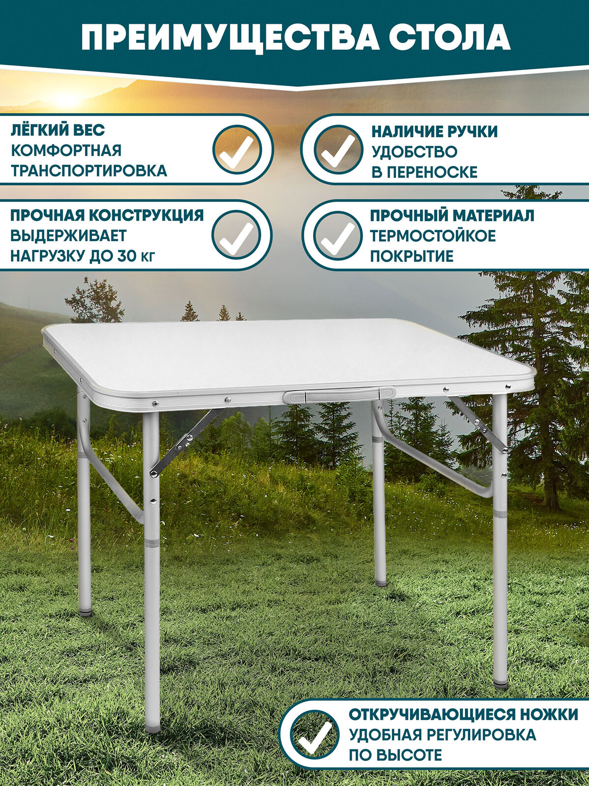Стол туристический складной JUNGLE CAMP Country 60. Стол для пикника, для кемпинга. Нагрузка 30 кг информация: