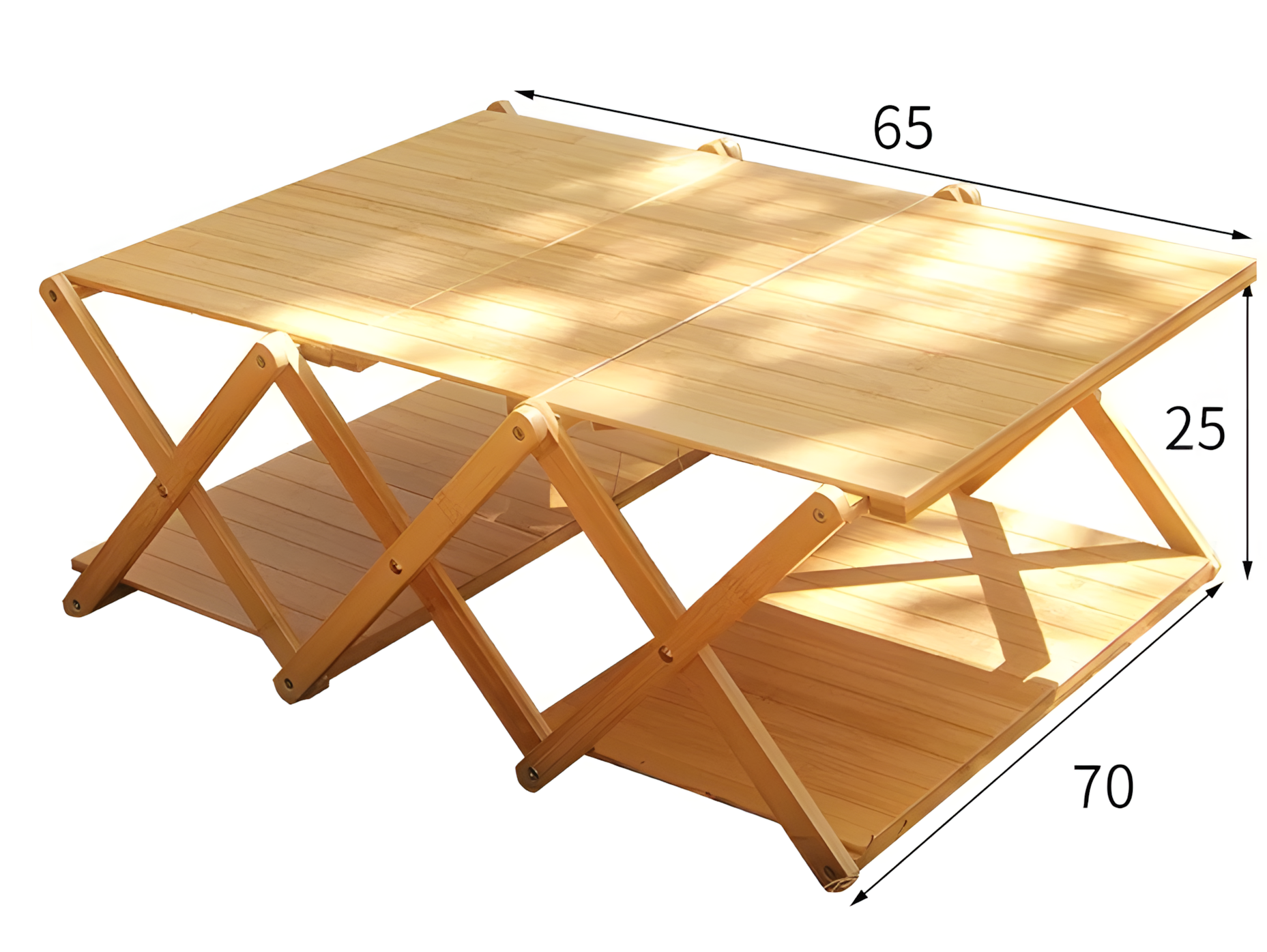 Складной туристический стеллаж из бамбука, 2 полки, натуральный, 25х50 см 2 584 ₽