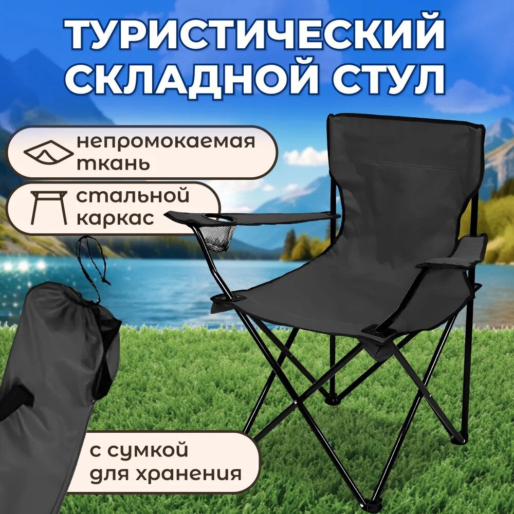 Отзывы на Стул складной туристический с подлокотниками и подстаканником, черный, кресло походное National Tree Company