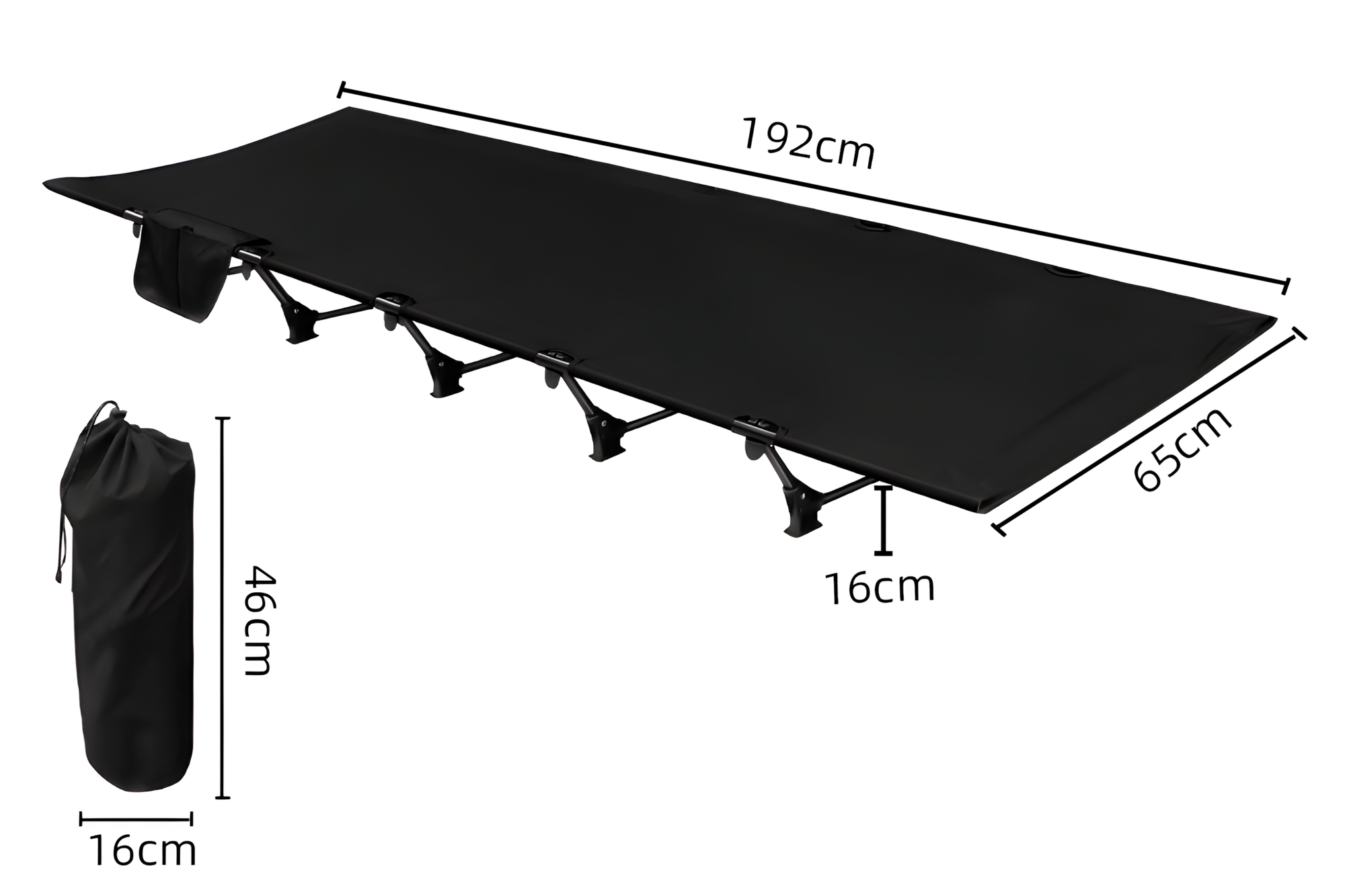 10 цен на Туристическая раскладушка Yuno, односпальная, складная, черная с черными ножками и карманом