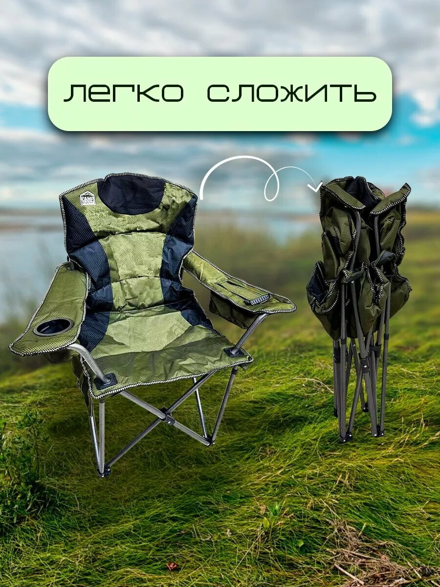 Кресло туристическое Бобёр, складное, для рыбалки, охоты, сада и дачи, зеленый/черный 8 463 ₽