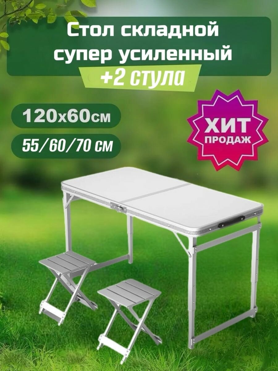 Отзывы на Стол туристичeский складной 120х60см + 2 алюминевых стула, белый