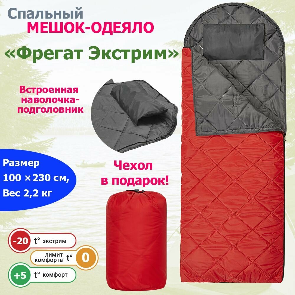 Спальный мешок туристический зимний Фрегат с капюшоном, 100 см х 230 см, красный (300 г/м2) информация: