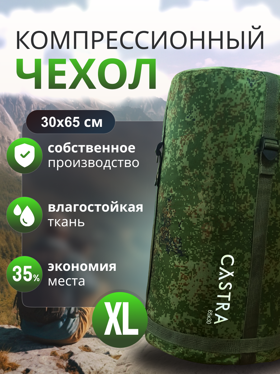 Компрессионный мешок Castra, для спальника, хаки/камуфляж, длина 65см информация: