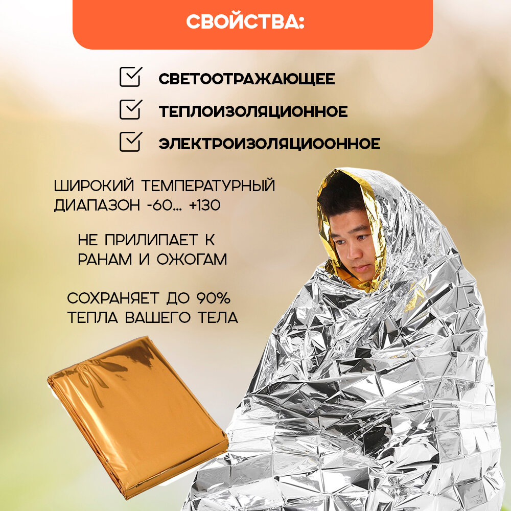 Термоодеяло-покрывало изотермическое спасательное 160 Х 210 см - 2 шт информация: