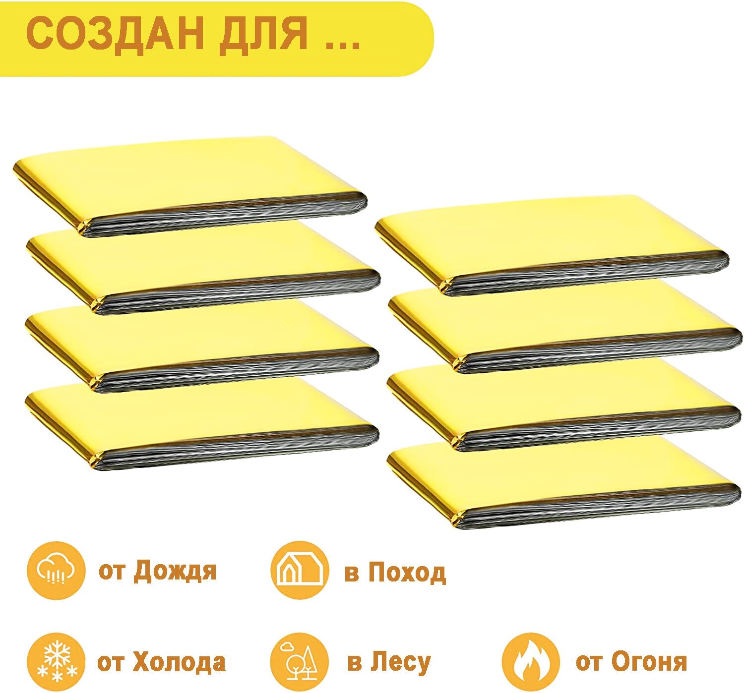 Спасательное одеяло ЮПИТЕР СОо-1, туристическое, 160x210 см, 5 шт, золотистое