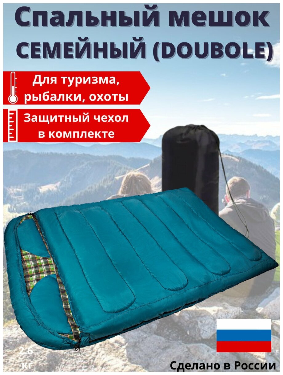 Спальный мешок "Семейный DOUBLE", одеяло с подголовником информация: