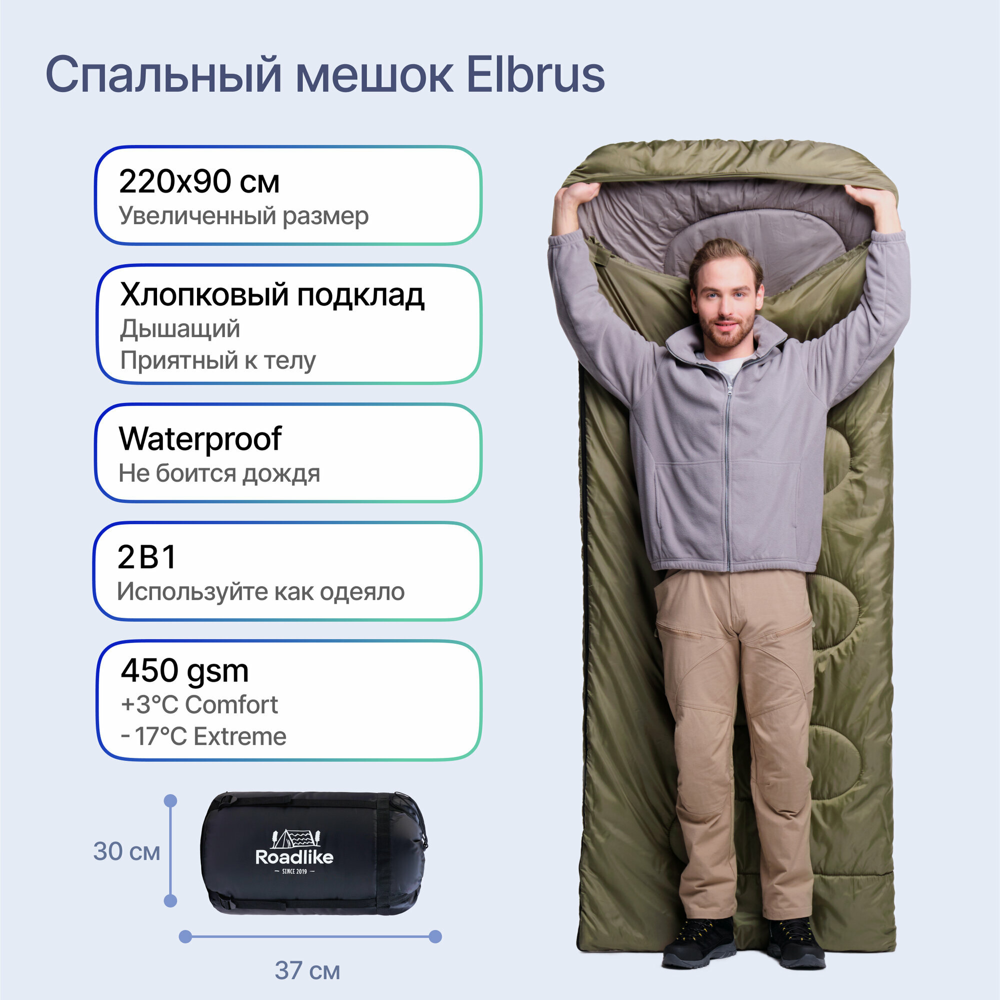 10 цен на Спальный мешок RoadLike EVEREST 220*90 см, с компрессионным мешком, зеленый