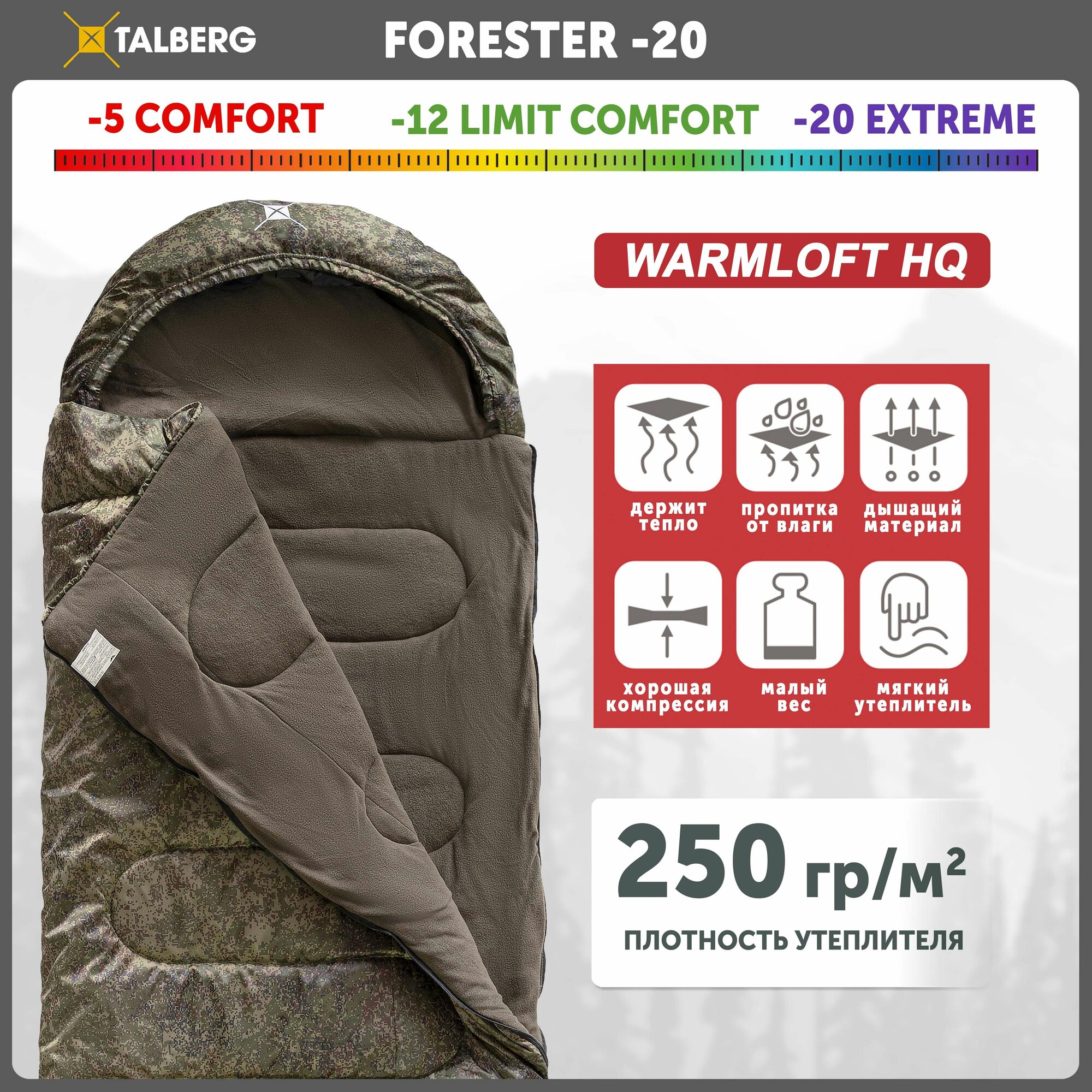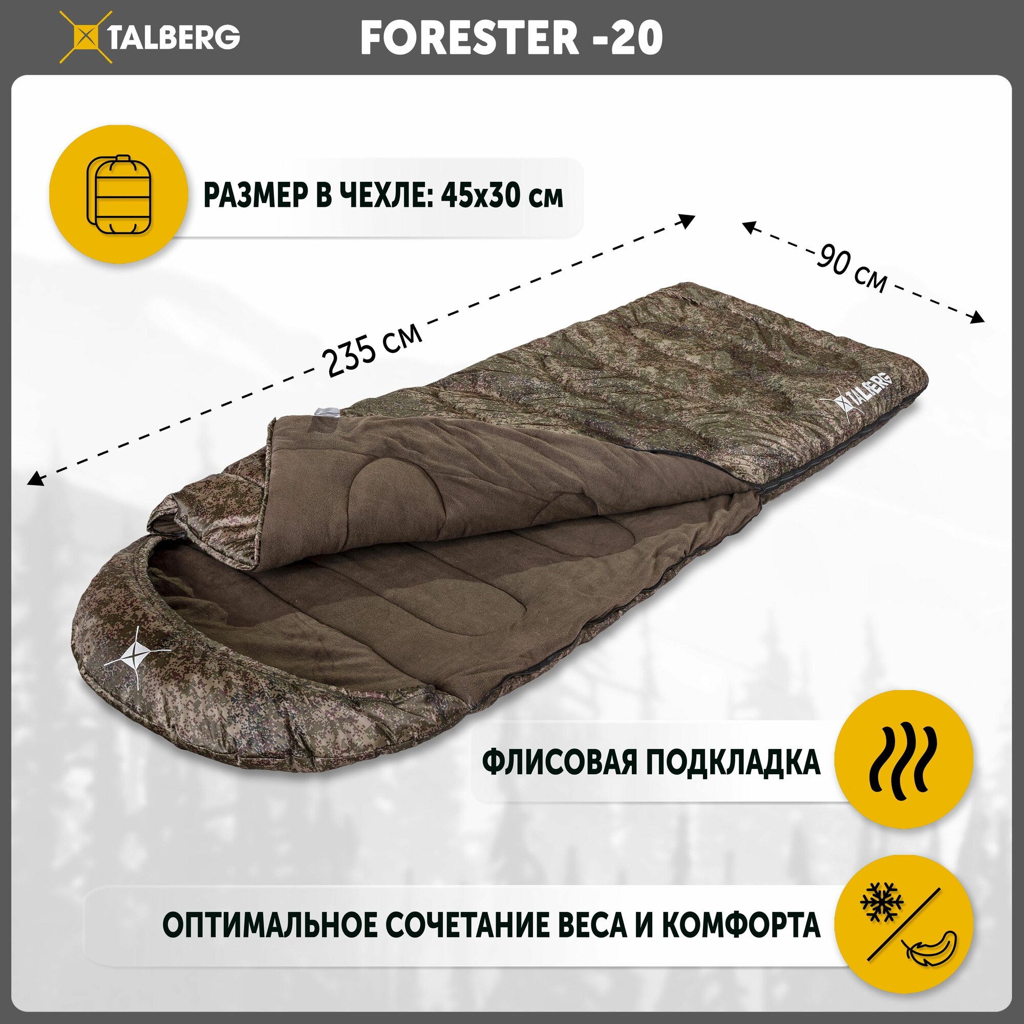 Спальный мешок туристический зимний Talberg FORESTER -20 С, цифра, правая молния информация:
