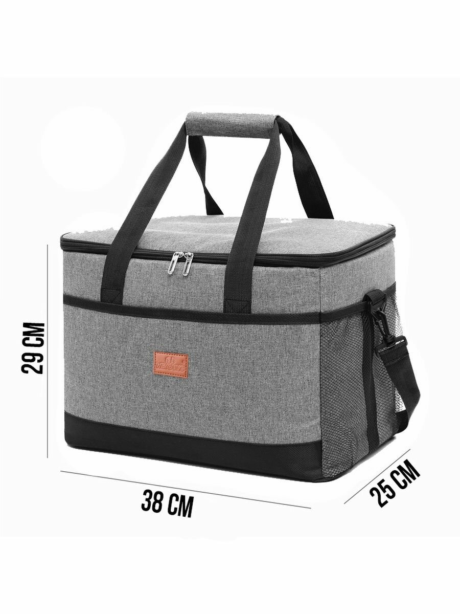 Термосумка WEYOUNG, с 2 хладоэлементами, 27 л, серая, тепло/холод информация:
