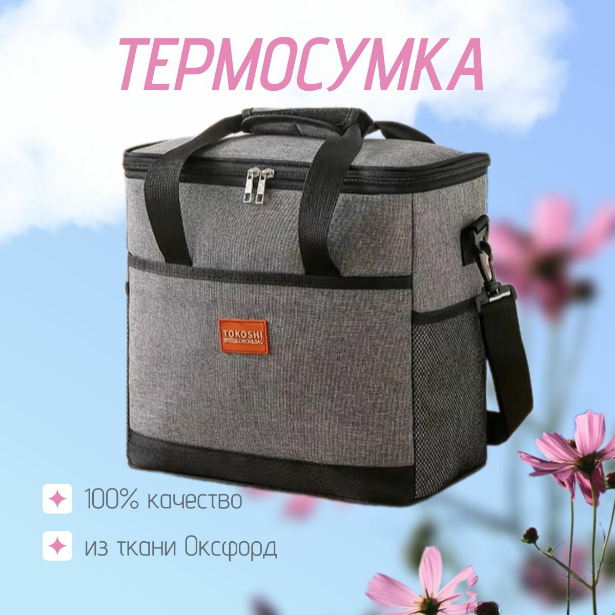 Отзывы на Сумка холодильник для пикника / Термосумка с плечевым ремнем для переноски серая