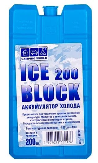 Отзывы на Аккумулятор холода для термосумок и термоконтейнеров Camping World "ICE 200 BLOCK", 200 гр, синий. (2 шт).