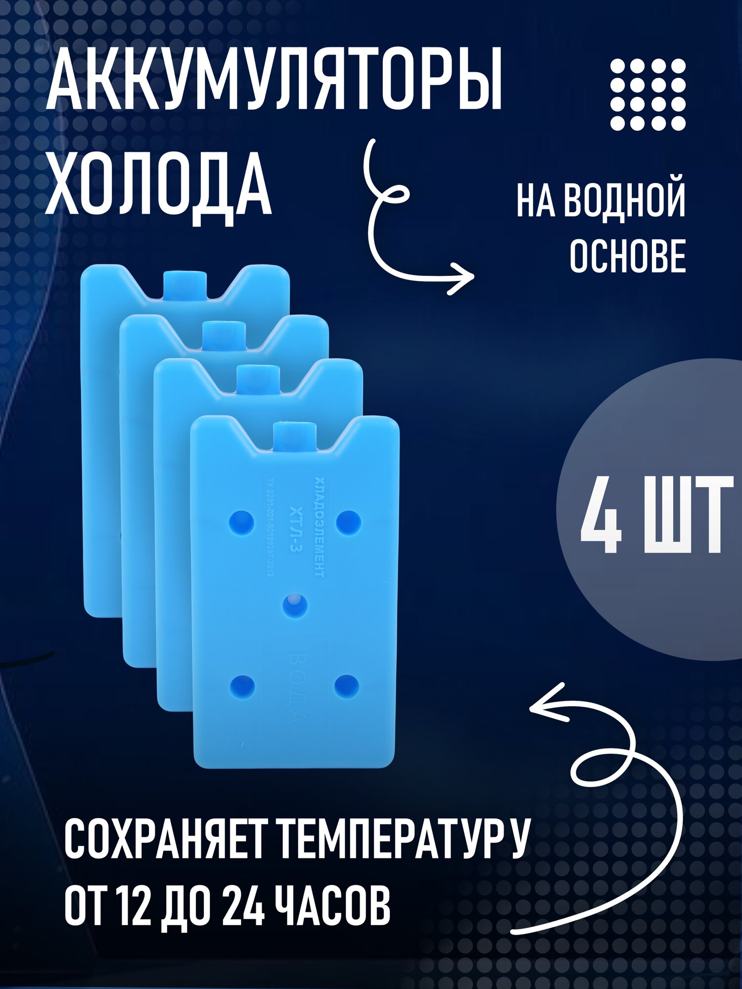 Аккумуляторы холода на водной основе 4 штуки, размер 16x9,3 см, сохраняет температуру от 12 до 24 часов информация:
