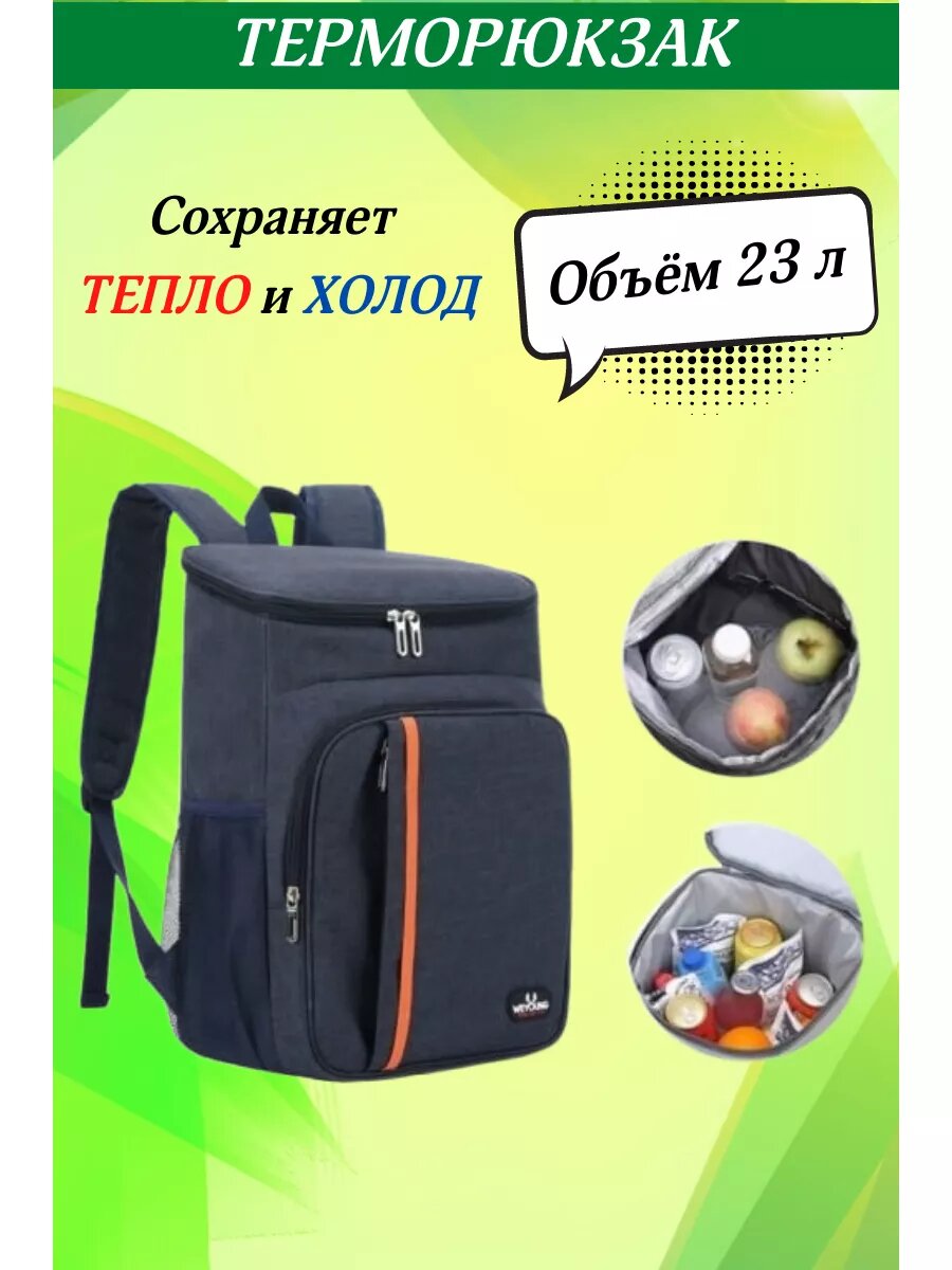 Отзывы на Терморюкзак, рюкзак холодильник для пикника, фольгированный ПВХ, синий, 23 литра