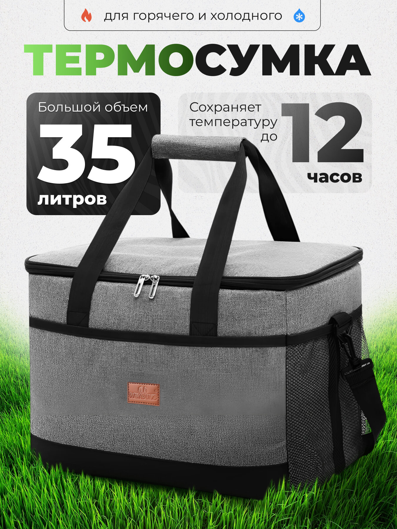 10 цен на Термосумка-холодильник, 35л, серая, пенополиуретан, Оксфорд/ПЕВА/Хлопок