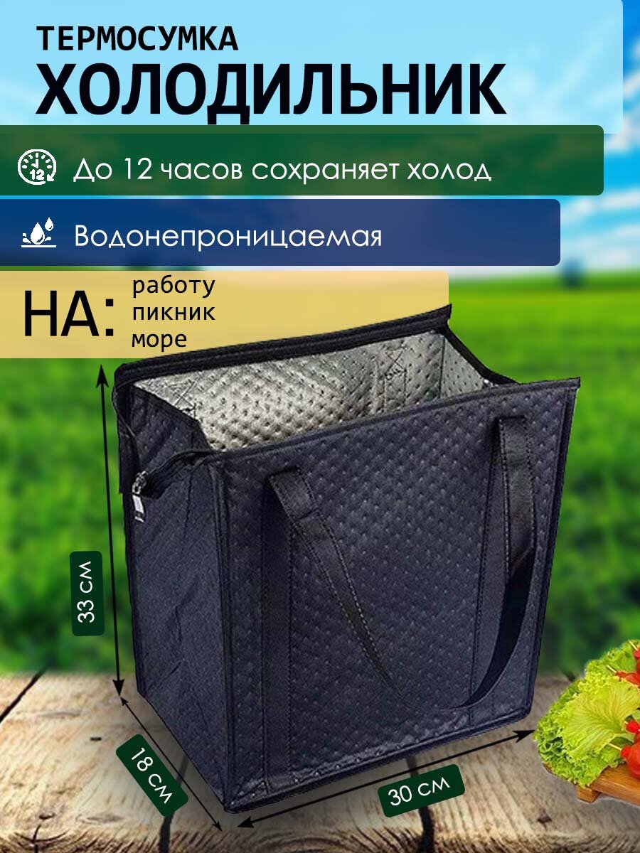 10 цен на Термосумка, для ланча, пенополиэтилен и фольгированный ПВХ, 16л, 33x30x18см, черная