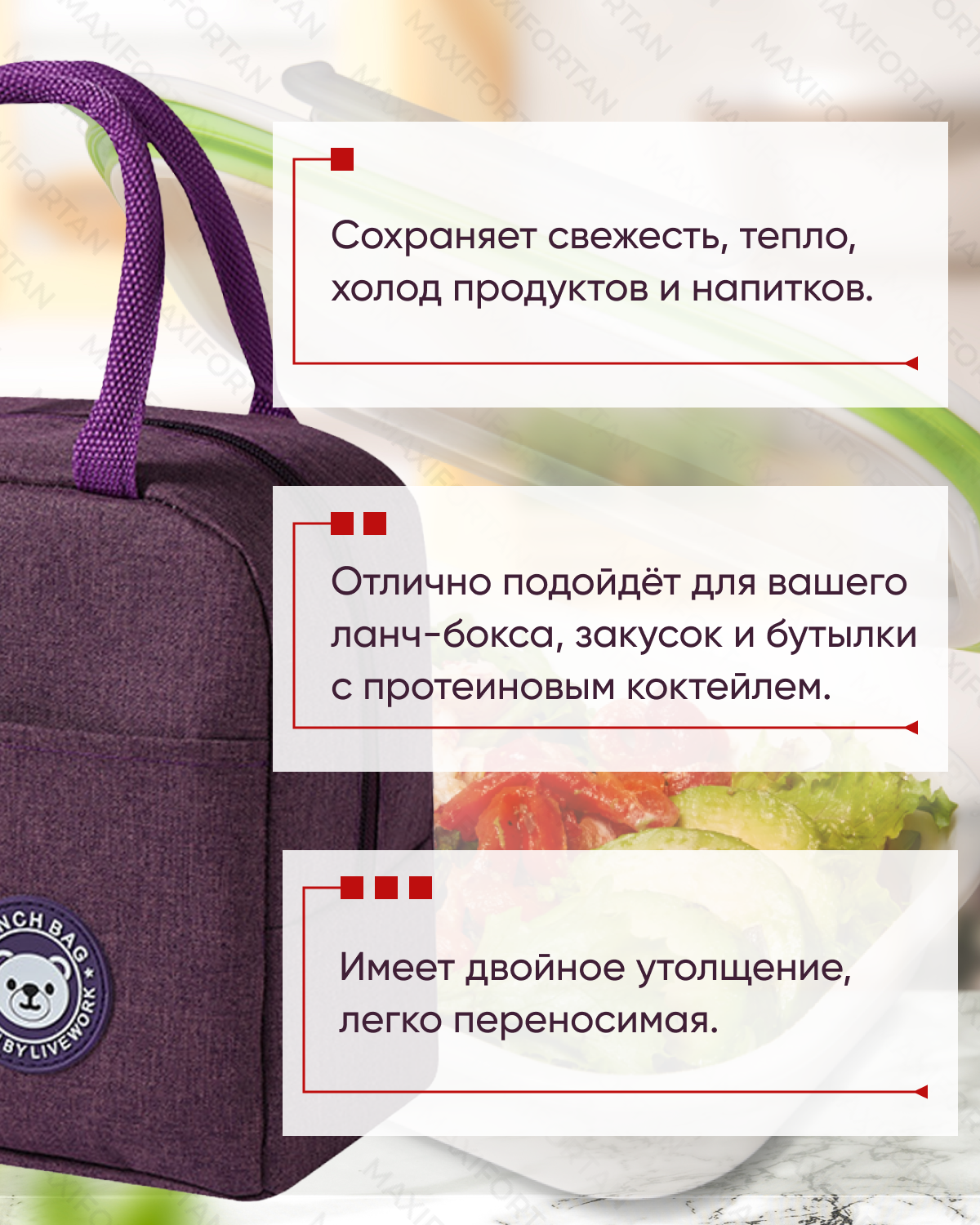 Отзывы на Сумка-холодильник (термосумка) 6 л (21х23х13 см) цвет пурпурный (MAXIFORTAN)