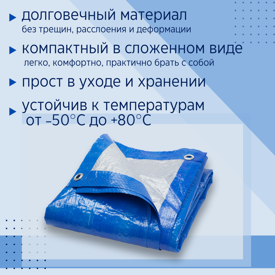 Тент туристический 2х3 м, 75 г/м2 из полипропилена с люверсами, полог укрывной универсальный (строительный, садовый), Миротент, Россия информация: