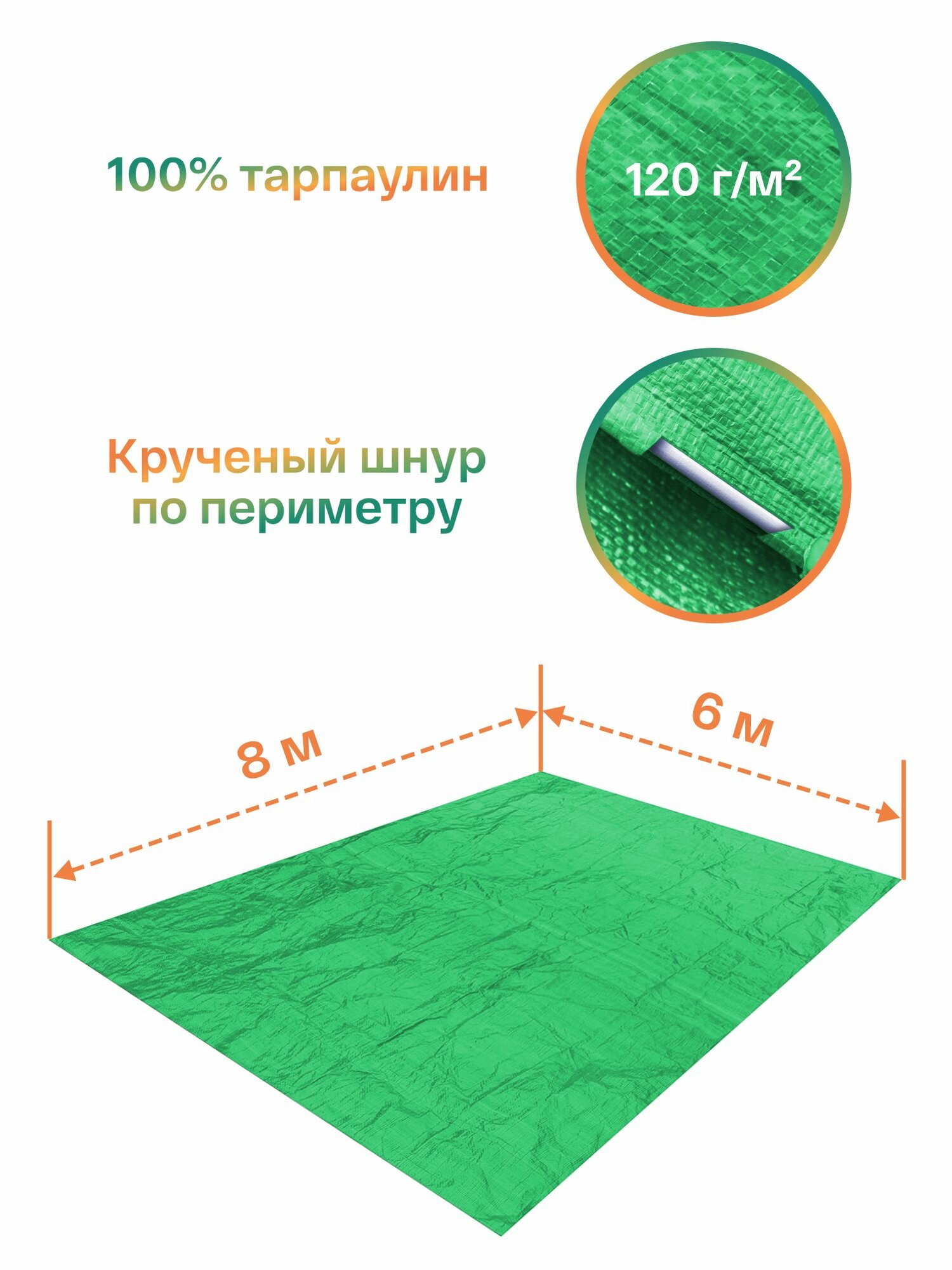 Тент укрывной 6х8 защитный 120гр/м2, туристический тарпаулин с люверсами, полог для садовых качелей, бассейна и автомобиля информация: