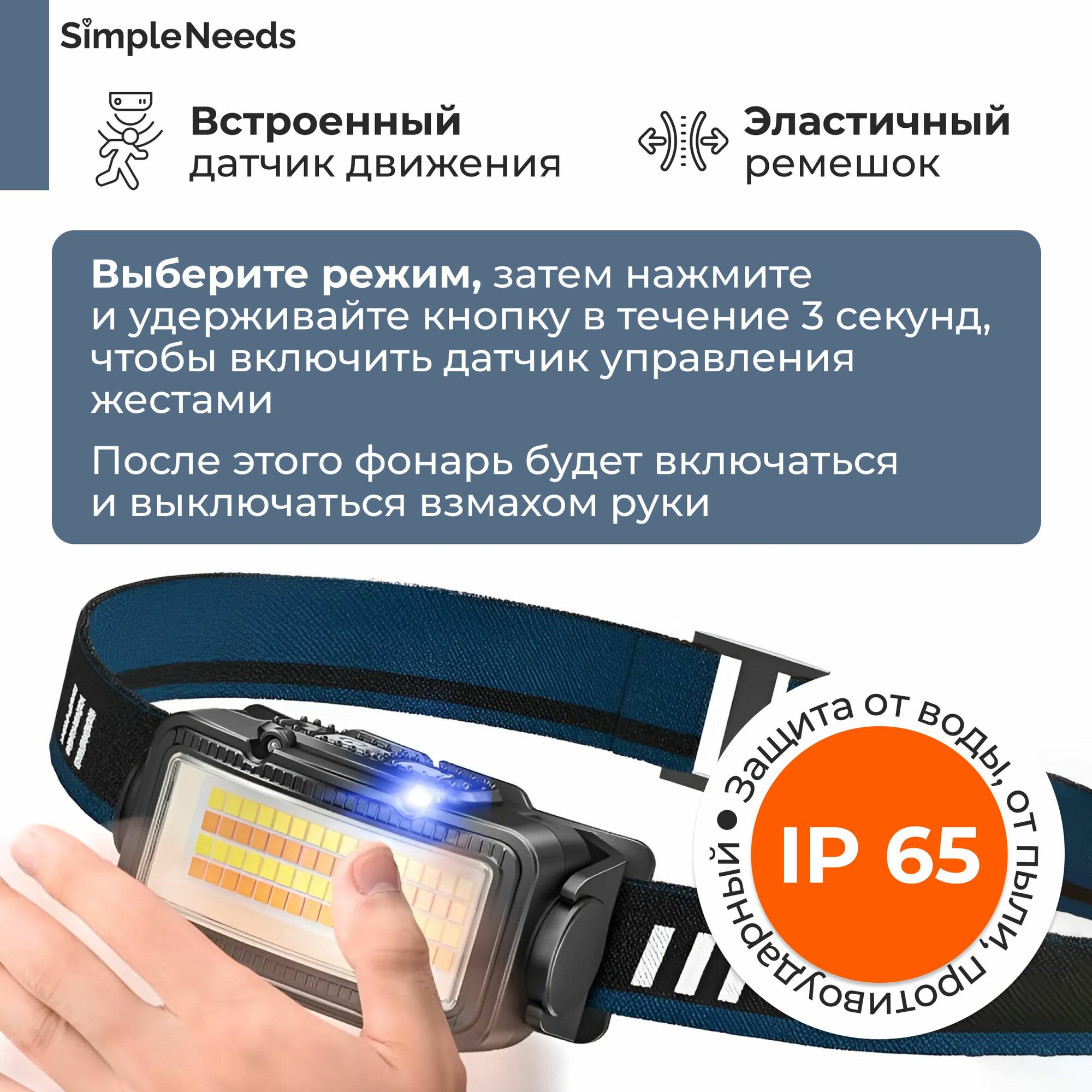 Фонарь налобный аккумуляторный светодиодный с функцией управления жестами 8 режимов информация:
