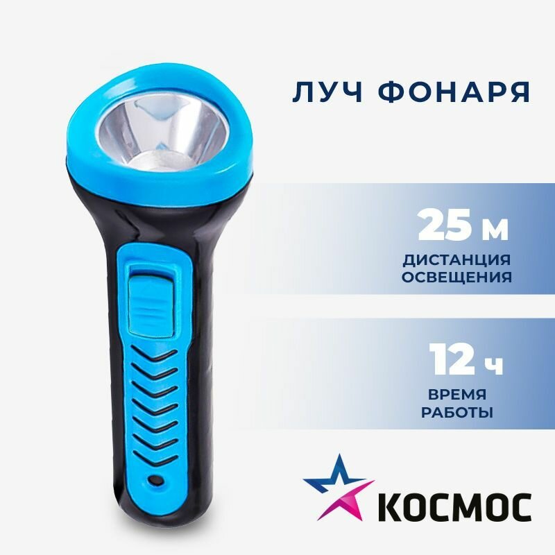Фонарь ручной 0.5ВтLED 1xAA корпус ABS-пластик c каучуковым напылением зажим для крепления космос KOC120B