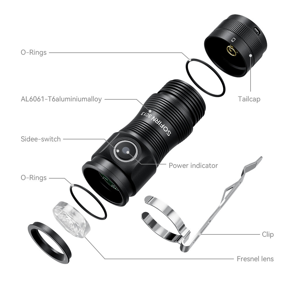 10 цен на Sofirn SC13 6000K SST40 LED 1300лм Мини Тактический фонарик 18350 6000K Аварийный фонарь для ключей