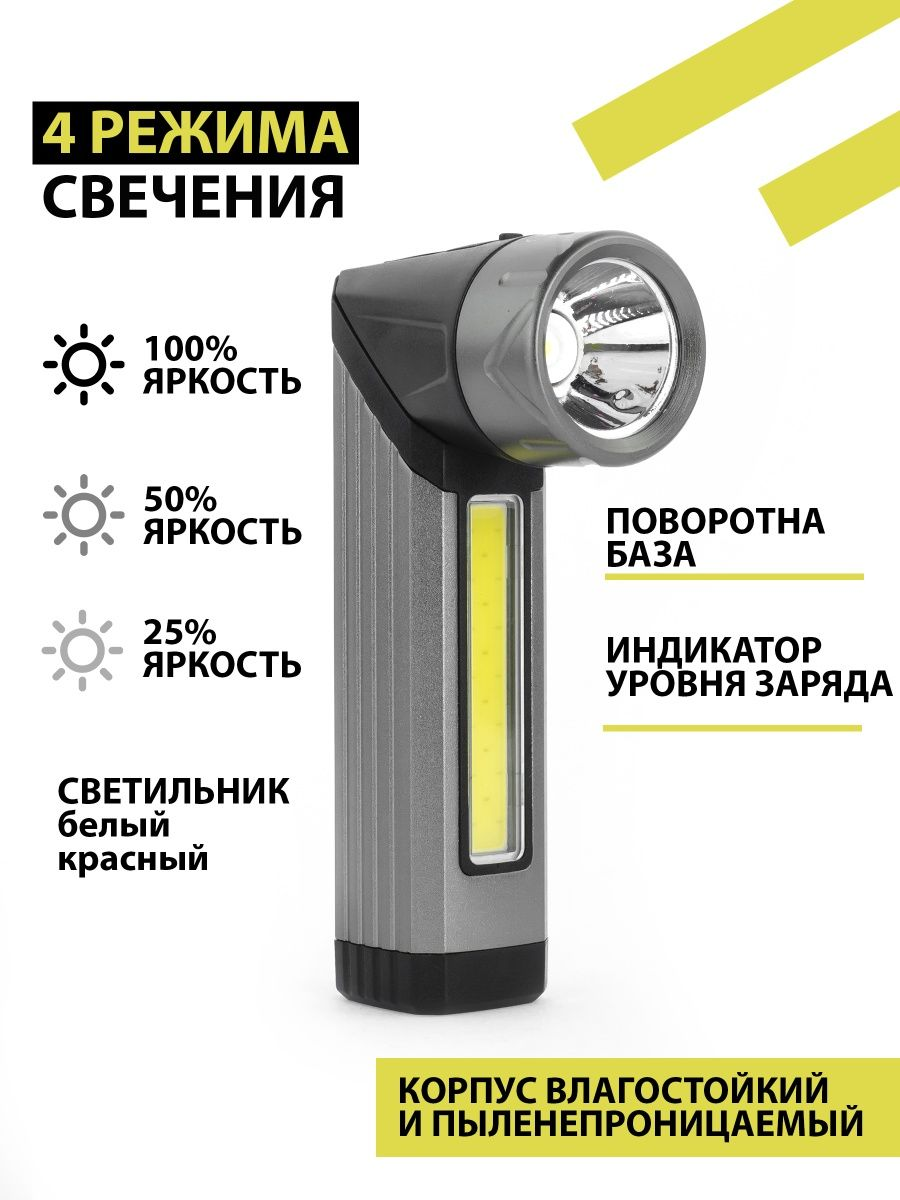 Фонарик ручной аккумуляторный светодиодный/фонарь переносной для ремонта автомобиля/ручной прожектор с магнитом