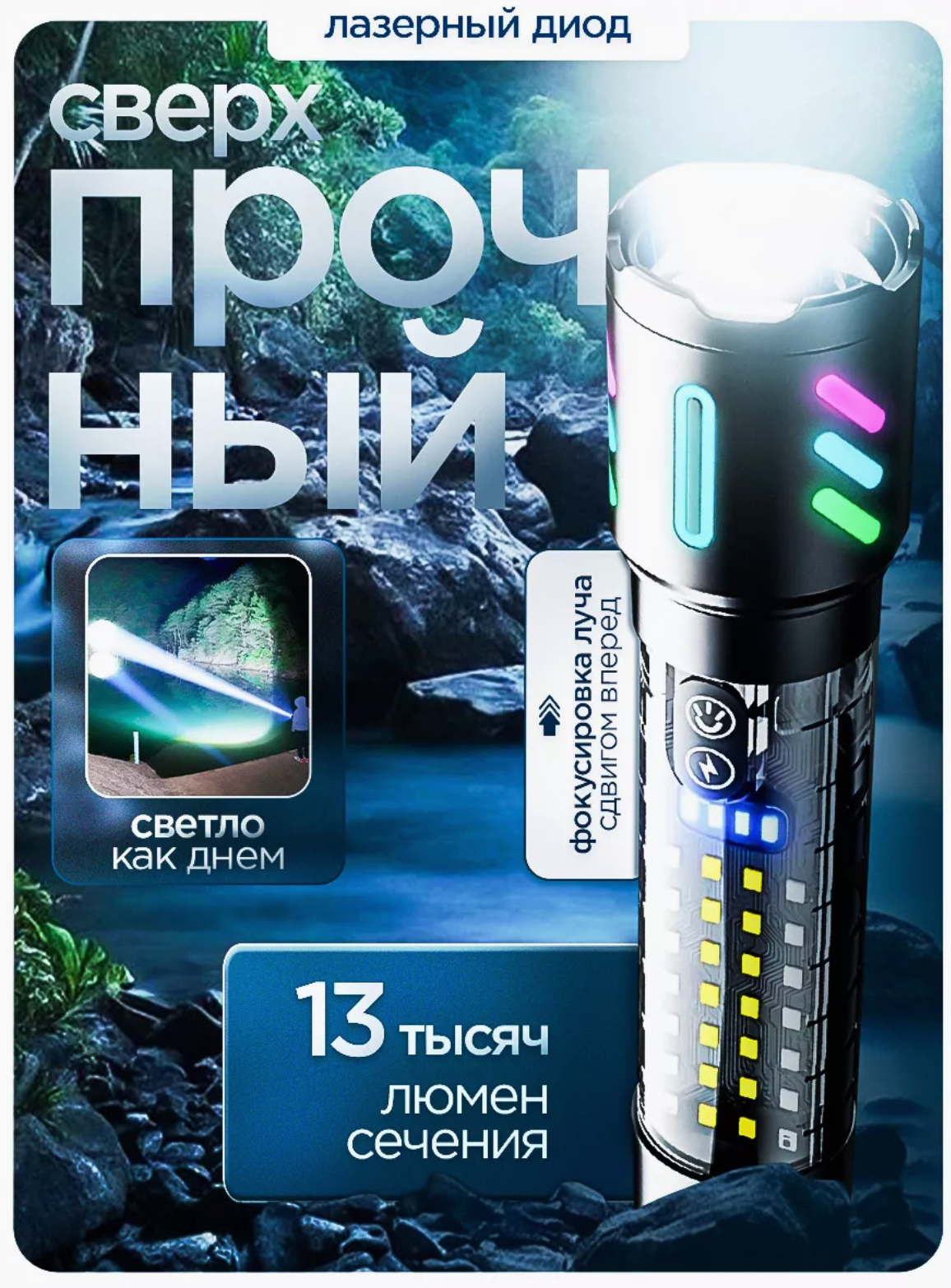 Отзывы на Фонарь светильник ручной аккумуляторный 2 в 1, Сверхмощный лазерный фонарь