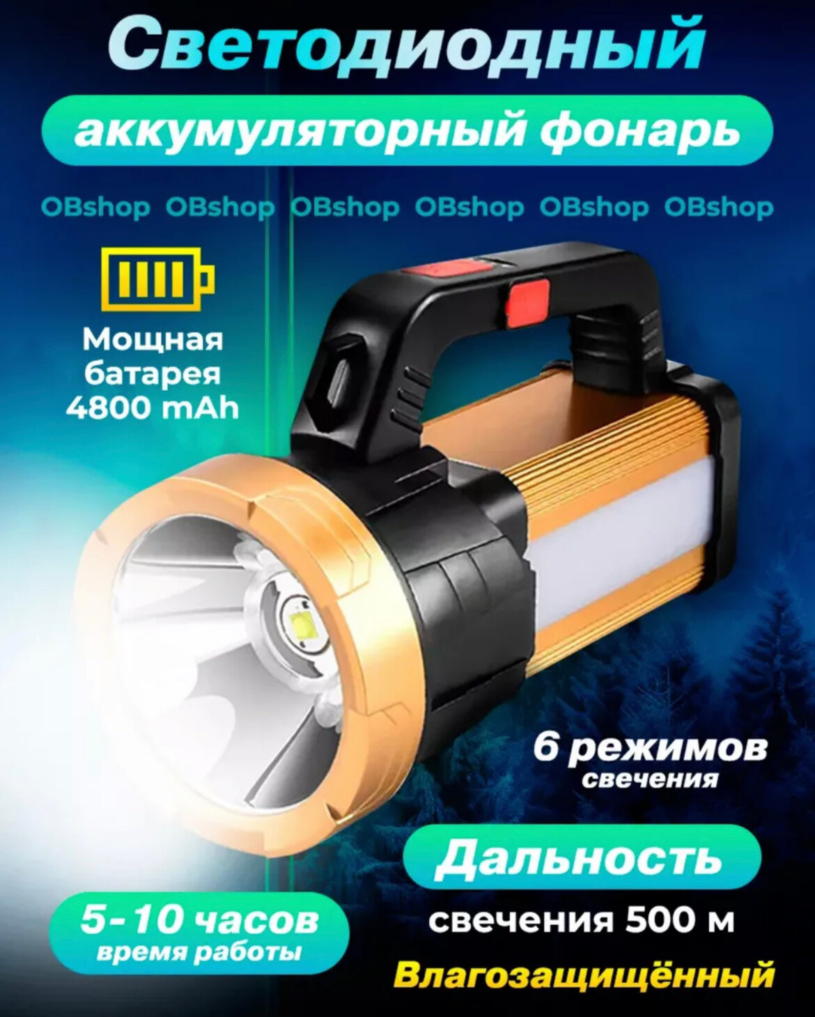 Светодиодный аккумуляторный фонарь 6 режимов дальность 500 м информация: