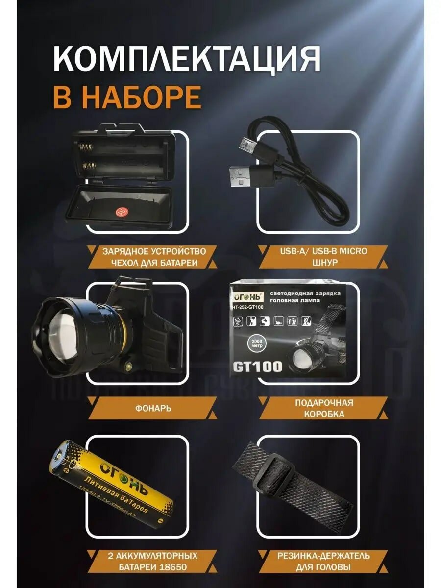 Отзывы на Мощный налобный водонепроницаемый, противоударный фонарь Огонь HT-182-2-TG, дальность 2000м с ZOOM