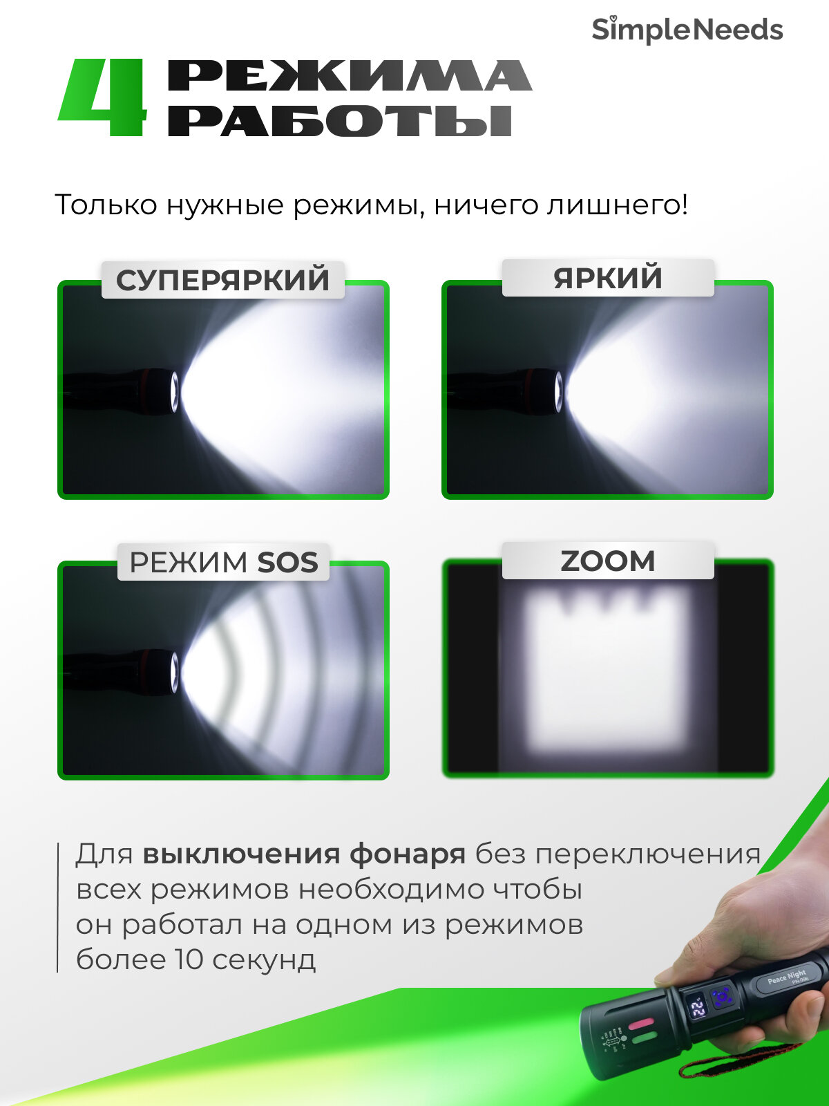 Отзывы на Фонарик ручной, тактический, светодиодный, черный, USB-зарядный, 2000lm