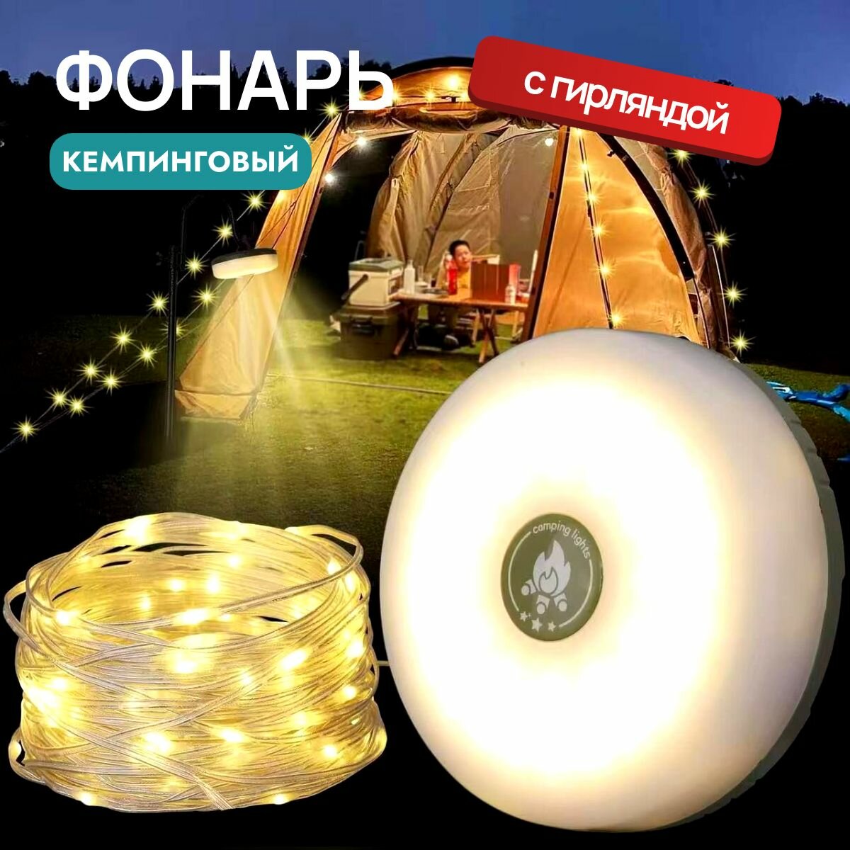Кемпинговая лампа гирлянда одноцветная / Портативный фонарь для отдыха на природе информация: