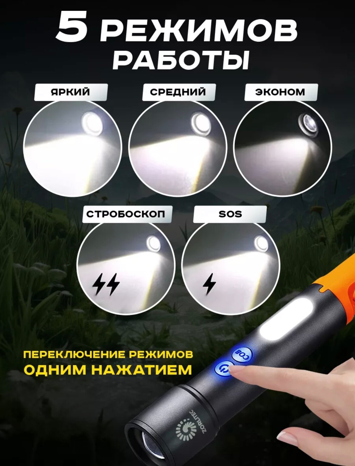 Фонарь ручной аккумуляторный, светодиодный, перезаряжаемый, для спорта, туризма, охоты и рыбалки нового поколения 1 049 ₽