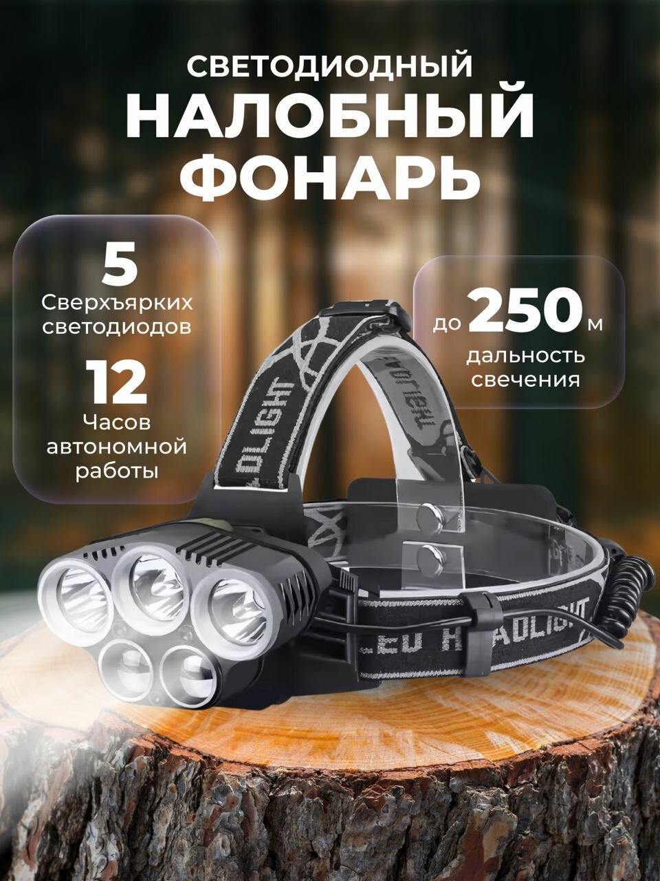 Отзывы на Налобный светодиодный фонарь аккумуляторный Headlamp 5 светодиодов