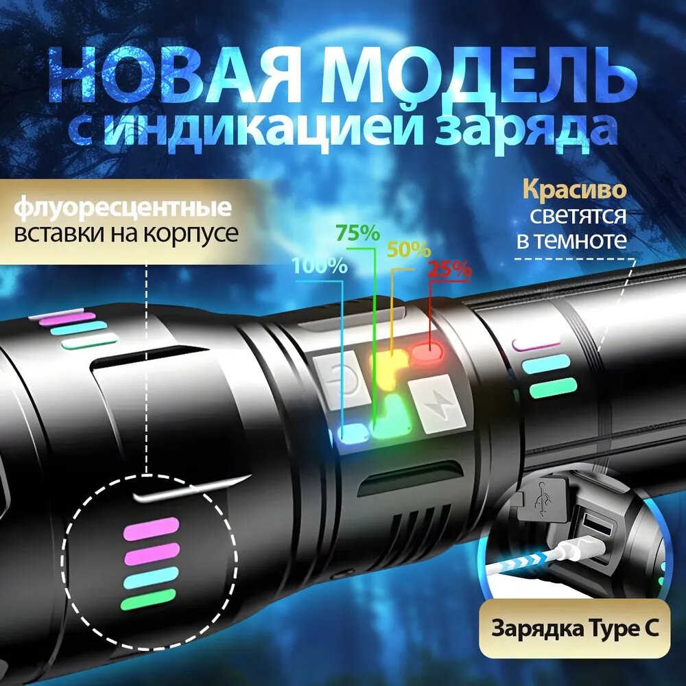 10 цен на Ультра мощный фонарь лазер Восход RC-6359-PM60-TG 80000Лм - 5 км дальность, линза зум, белый лазер.