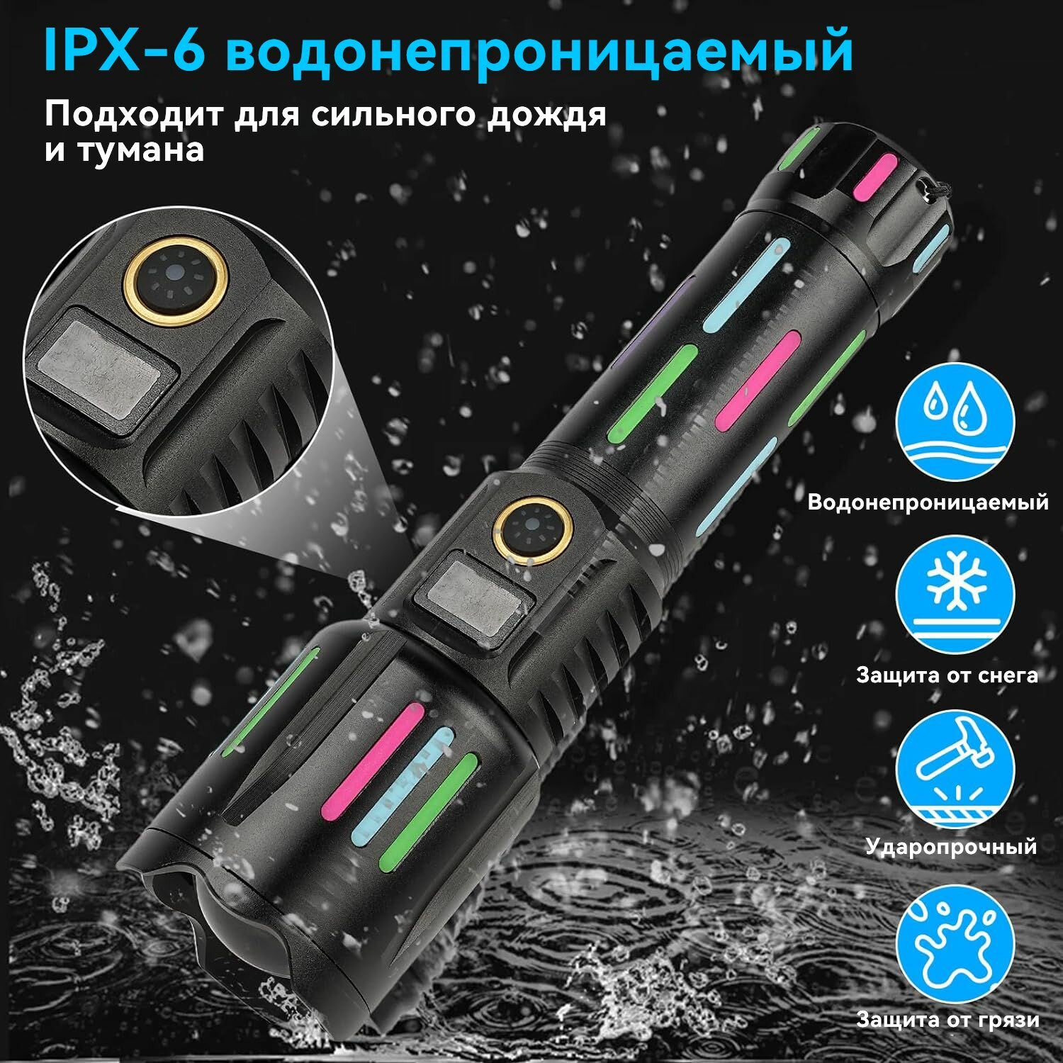 LIIHOE Мощный Фонарь Тактический аккумуляторный лазерный ручной, фонарик походный с usb зарядкой информация: