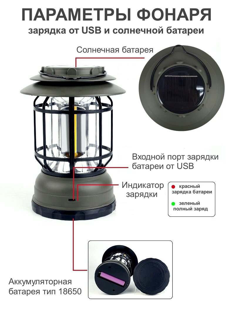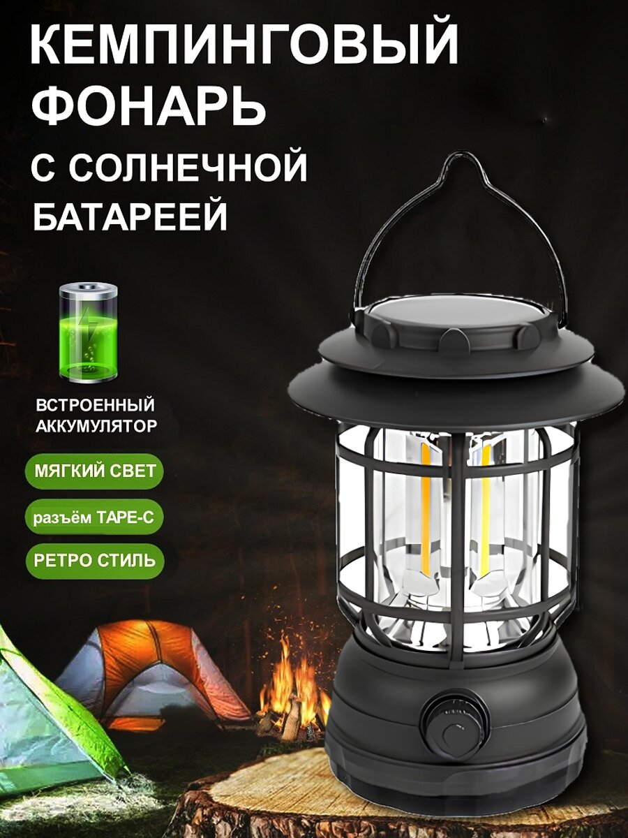 Кемпинговый фонарь аккумуляторный подвесной светодиодный черный информация:
