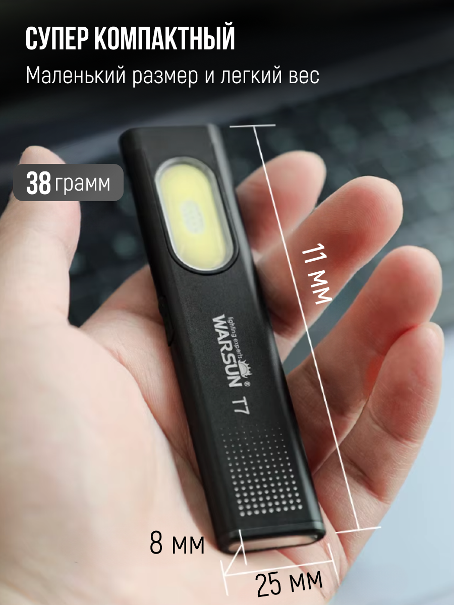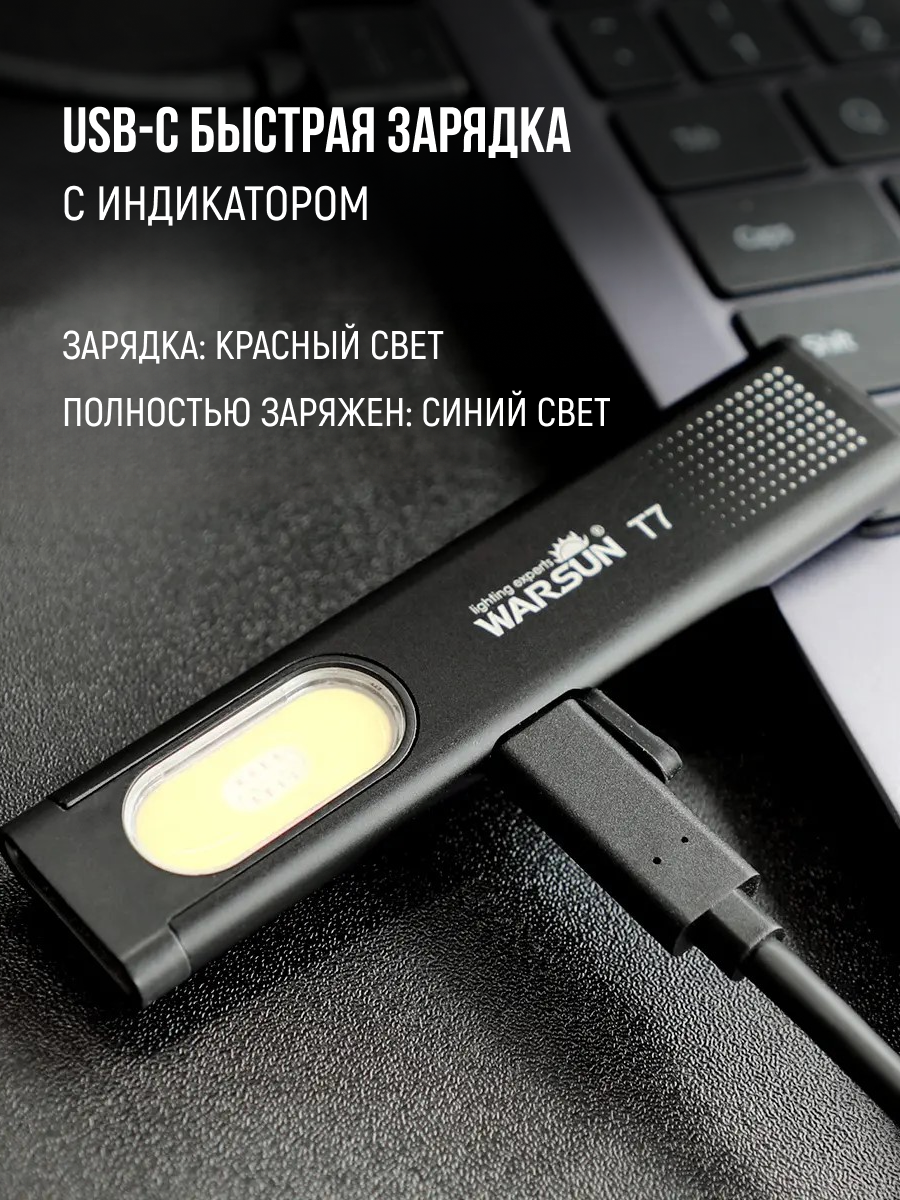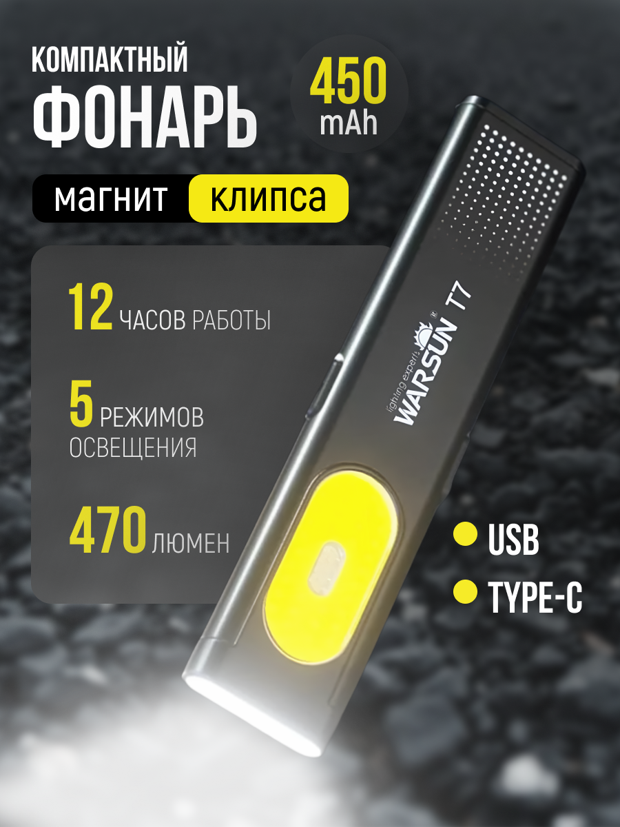 10 цен на Фонарь T7, 450 Люмен, Type-C, Аккумуляторный, 450mAh