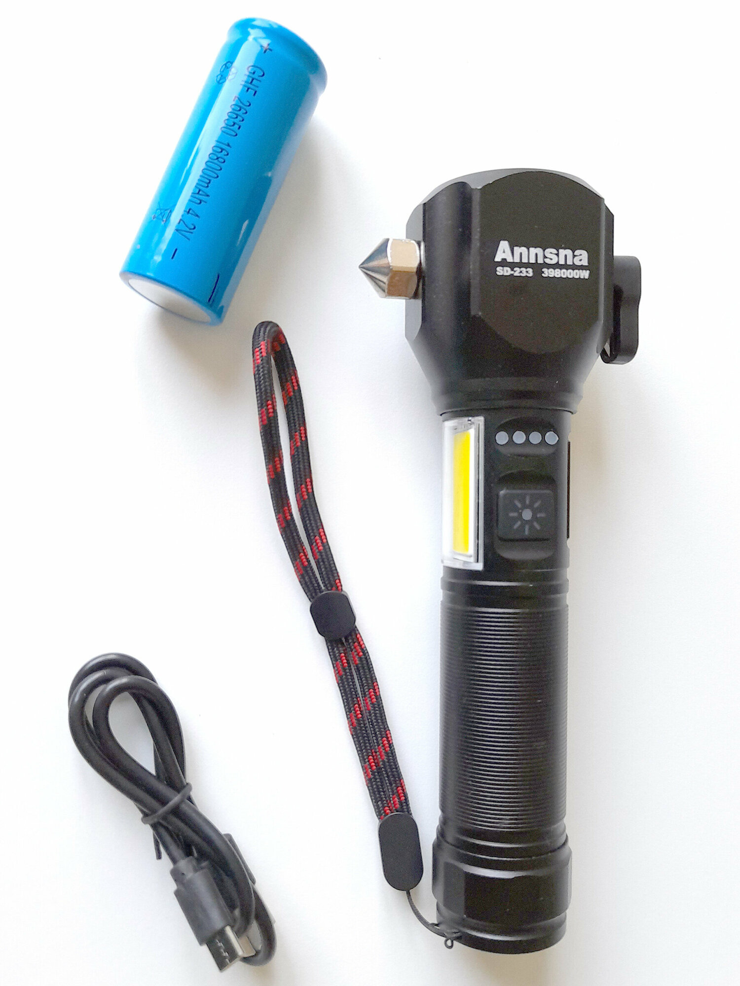 Отзывы на Мощный светодиодный фонарь с пробивным молотком и резаком Annsna SD-233