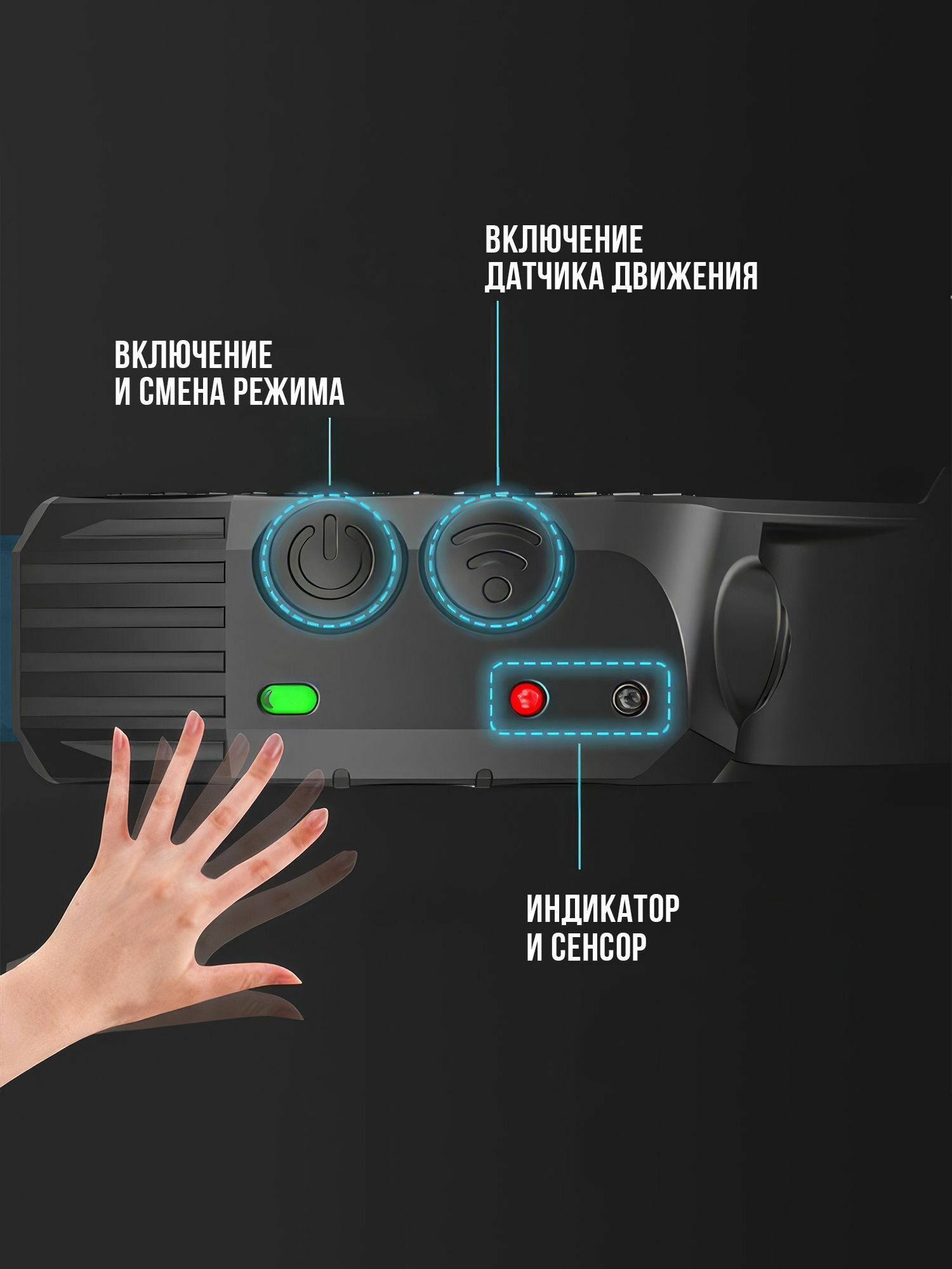 Налобный фонарь IBRICO, LED, USB-зарядкой, с датчиком движения, черный информация: